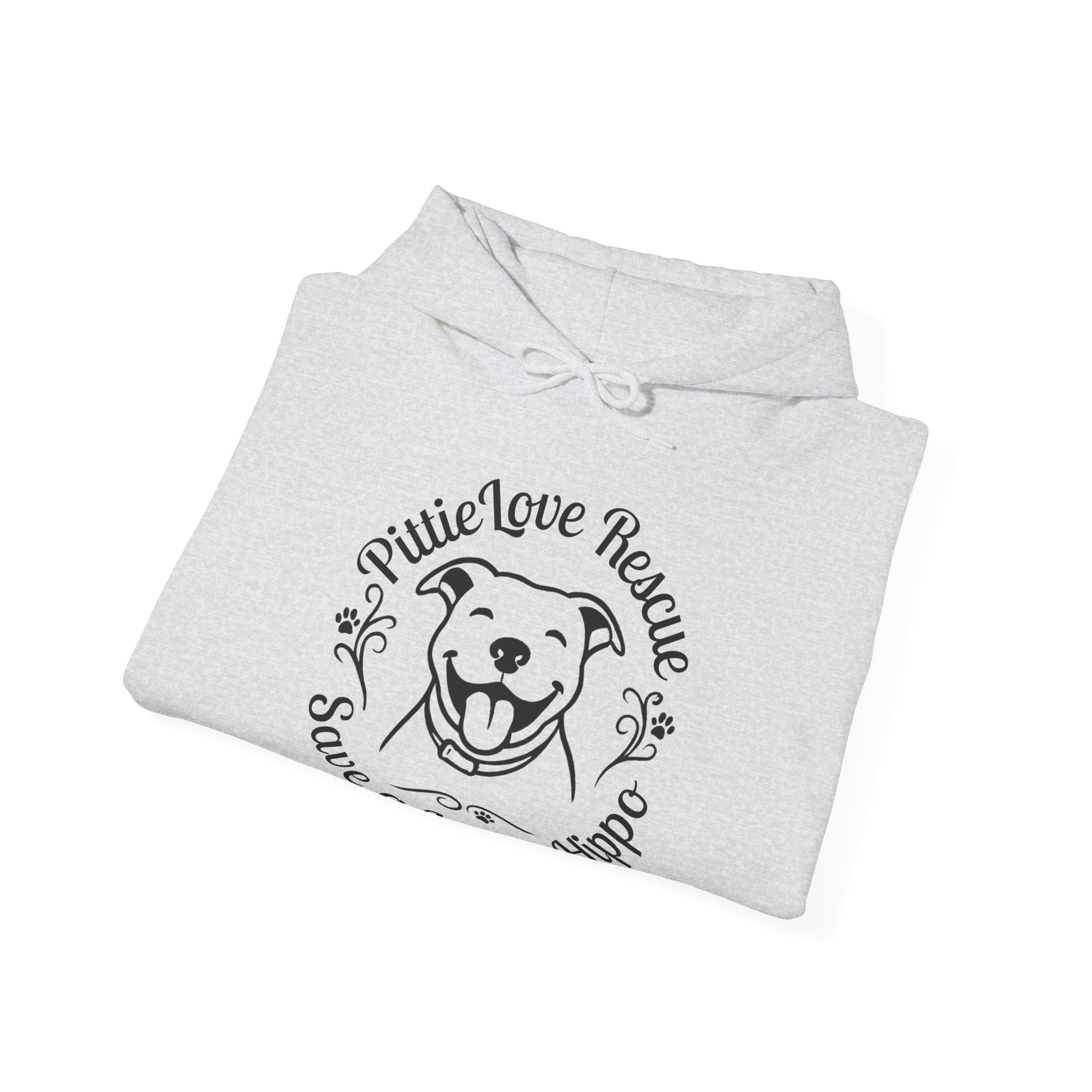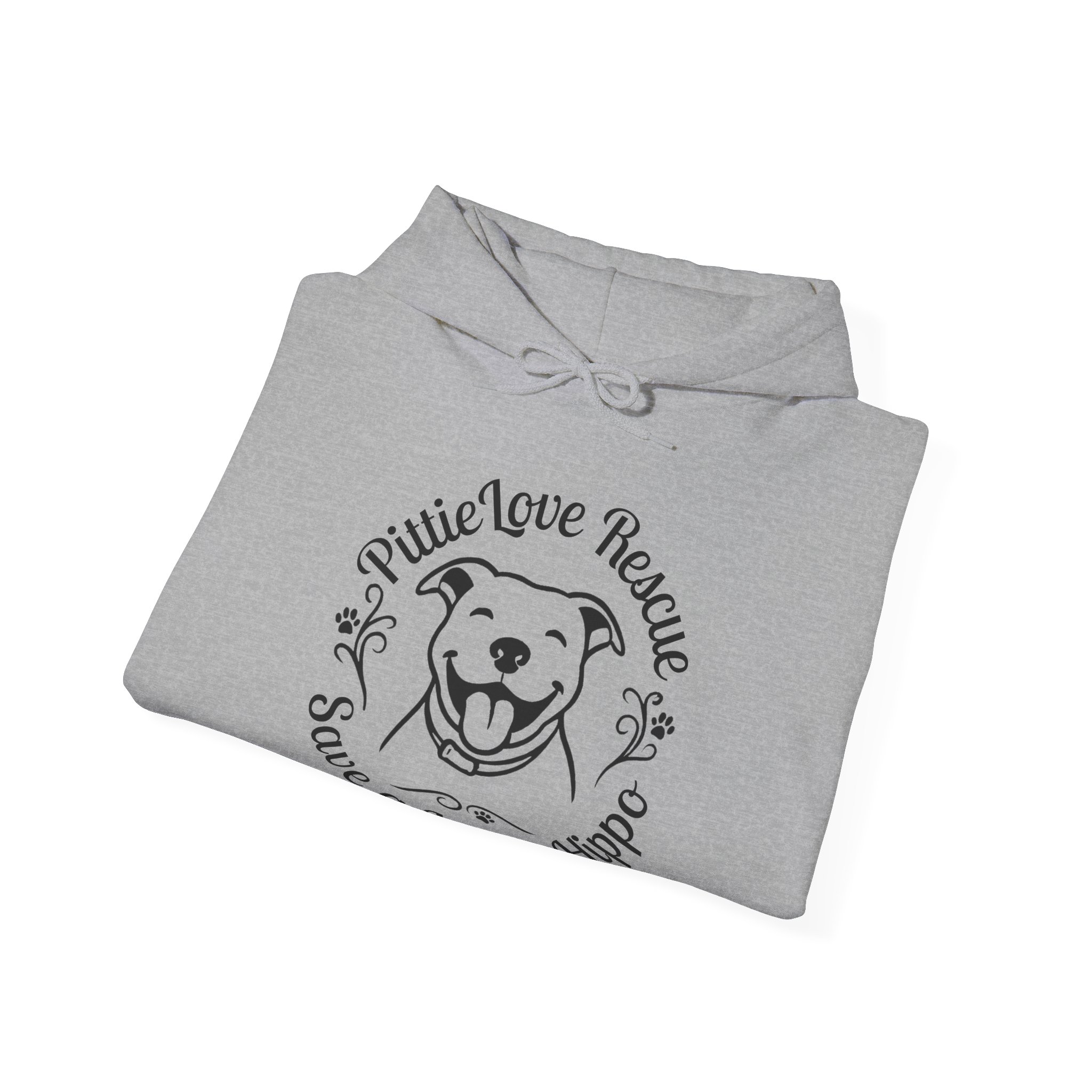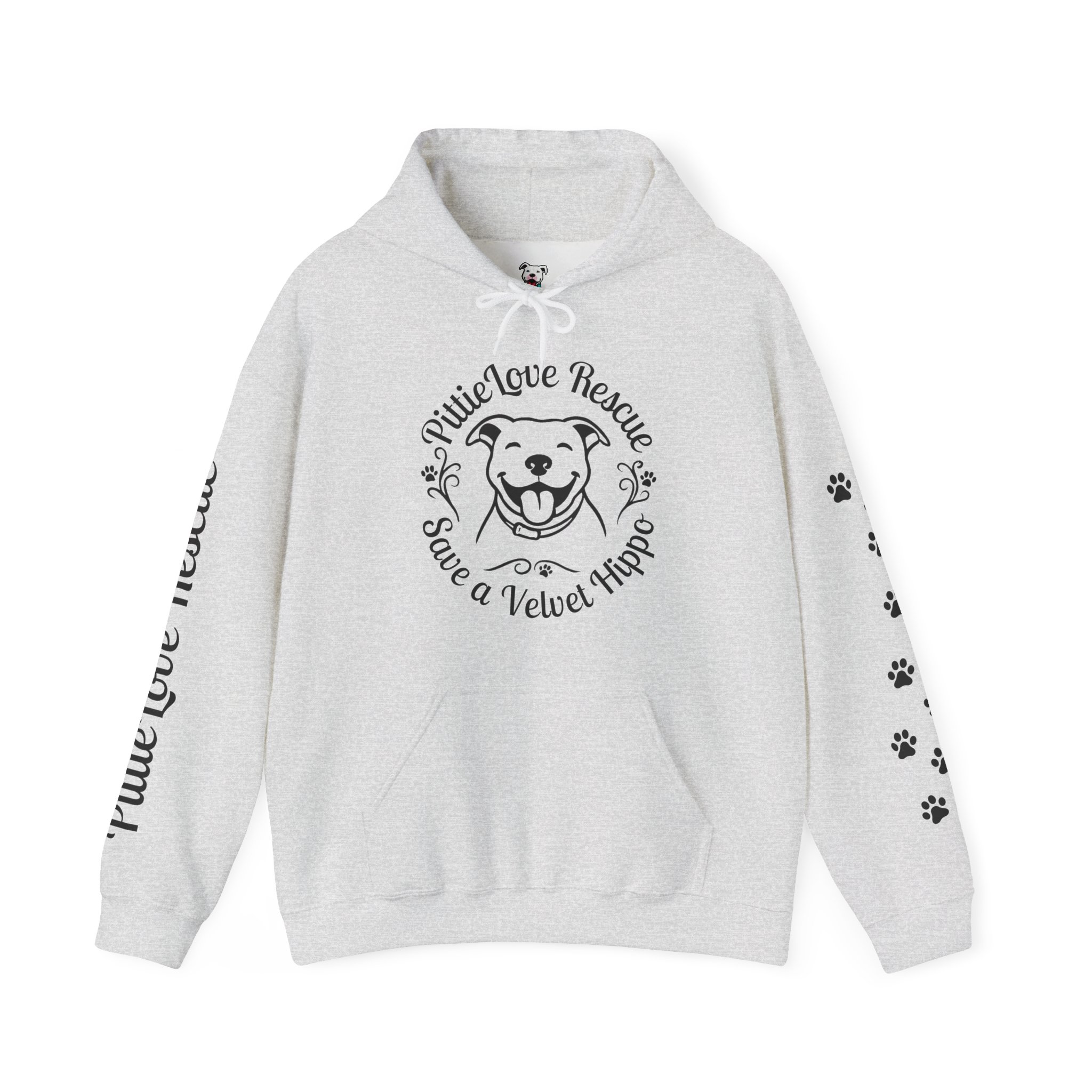 PittieLove Rescue “Save a Velvet Hippo” Hoodie — Dog Rescue Paw-Print Sweatshirt