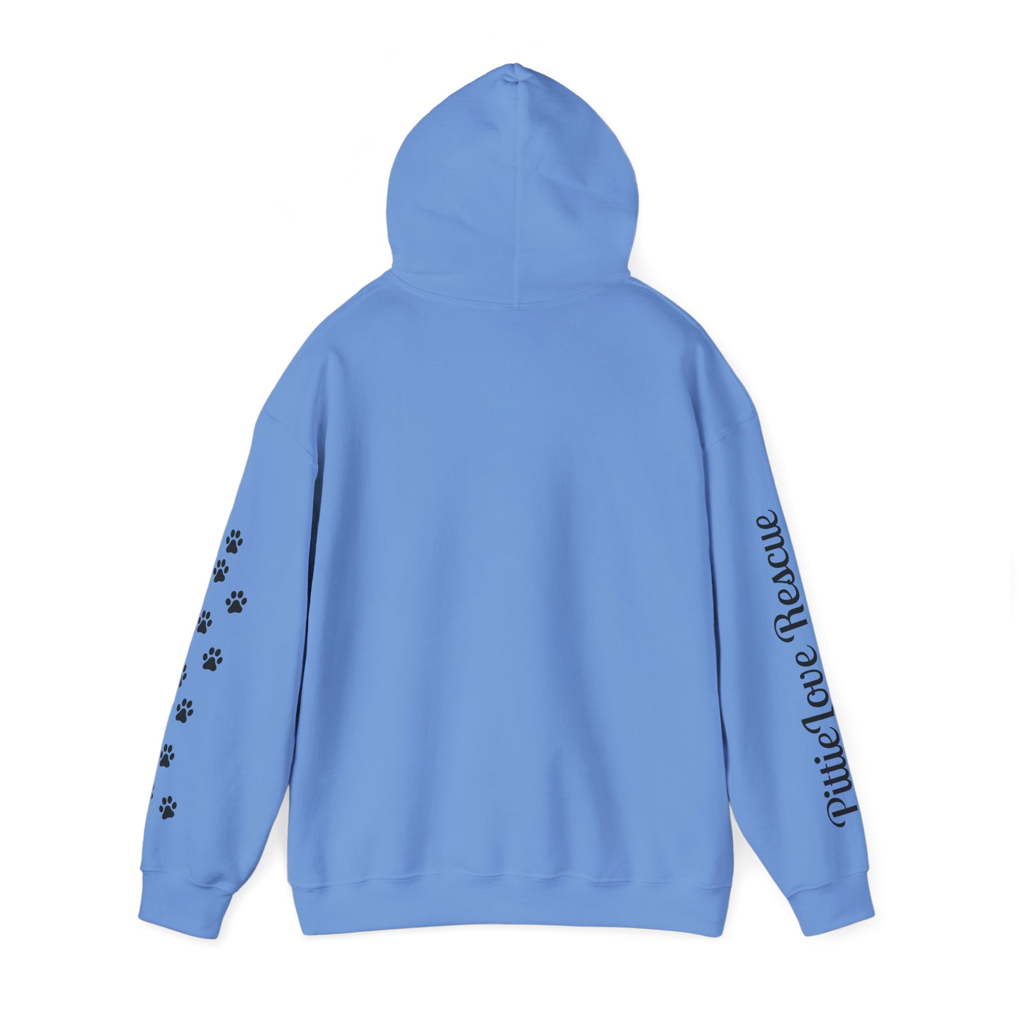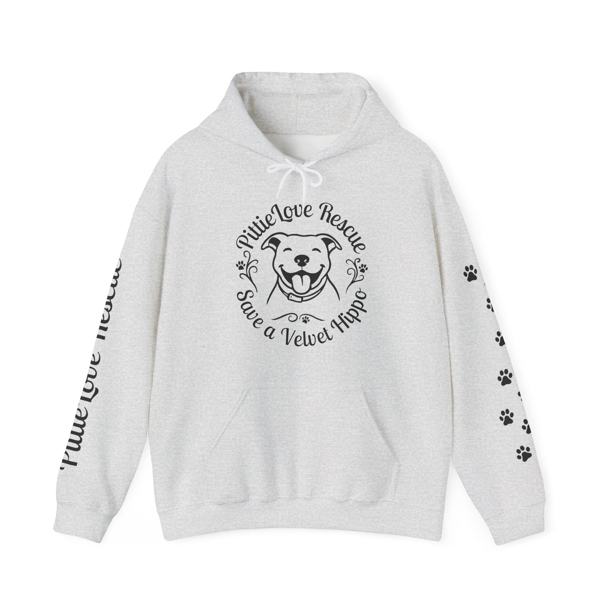 This cozy hooded sweatshirt carries a quiet, heartfelt message: rescue and love for pit bulls. The soft heather fabric and classic fit make it feel like a warm hug after a long day of walks, volunteer shifts, or quiet mornings at home. A friendly pit bull face crowned by the words “Pitlite Love Rescue — Save a Velvet Flop” sits on the chest, while paw prints trail down one sleeve and the rescue name runs along the other. Wear it to adoption events, transport shifts, or just while sharing stories with fellow rescuers. It’s made to be comfortable, durable, and meaningful — a wearable nod to the tender, loyal spirit of shelter dogs and the people who fight for them.